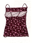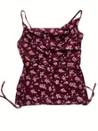 Top à Cordon Latéral Imprimé Floral,Haut Sexy À Bretelles Spaghetti À Col En V Pour L'été, Vêtements Pour Femmes.